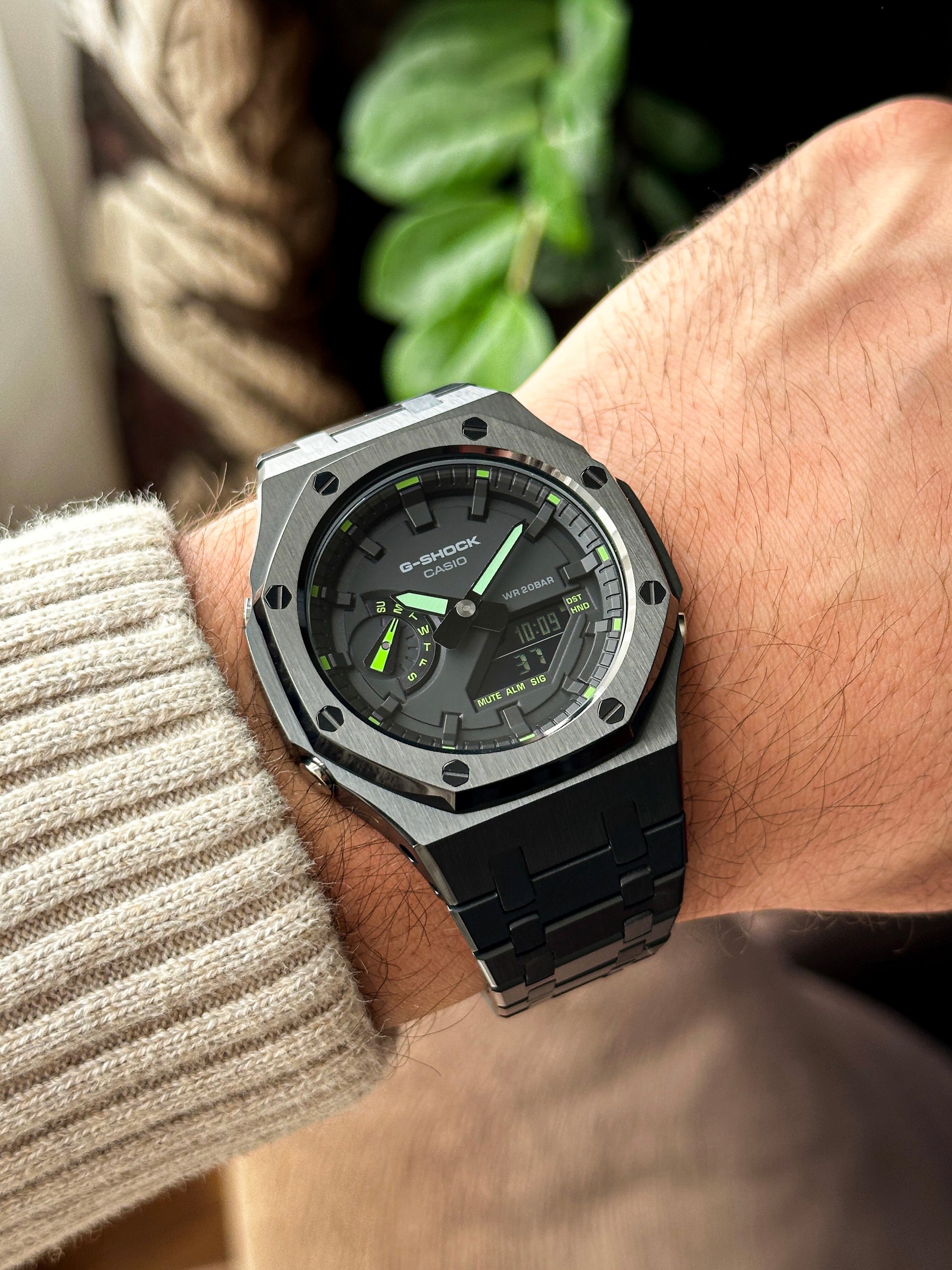 G-SHOCK CasiOak Potpuno crna - sa crno zelenim brojčanikom sata