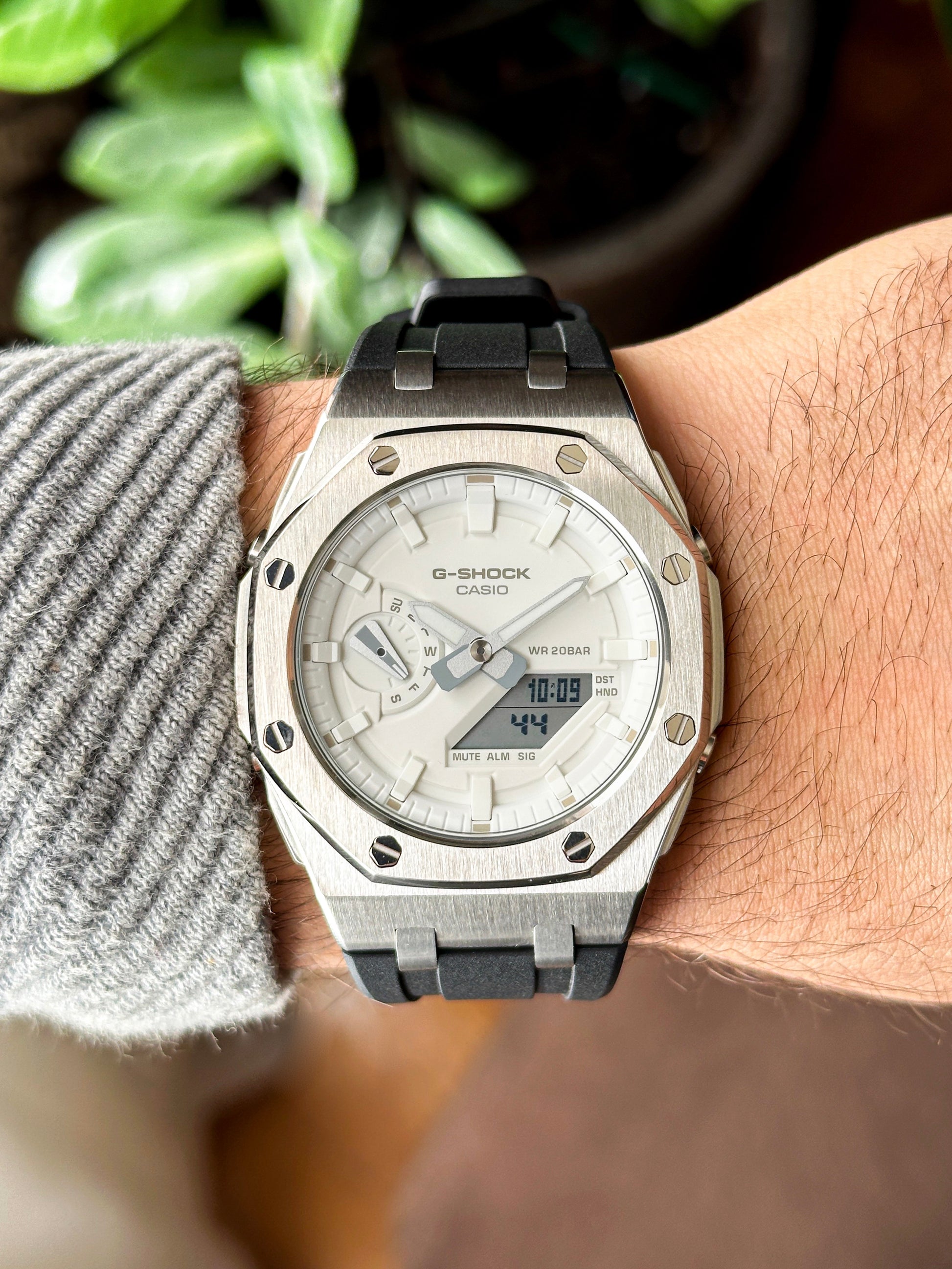 G-SHOCK CasiOak Crno srebrna - sa belim brojčanikom sata