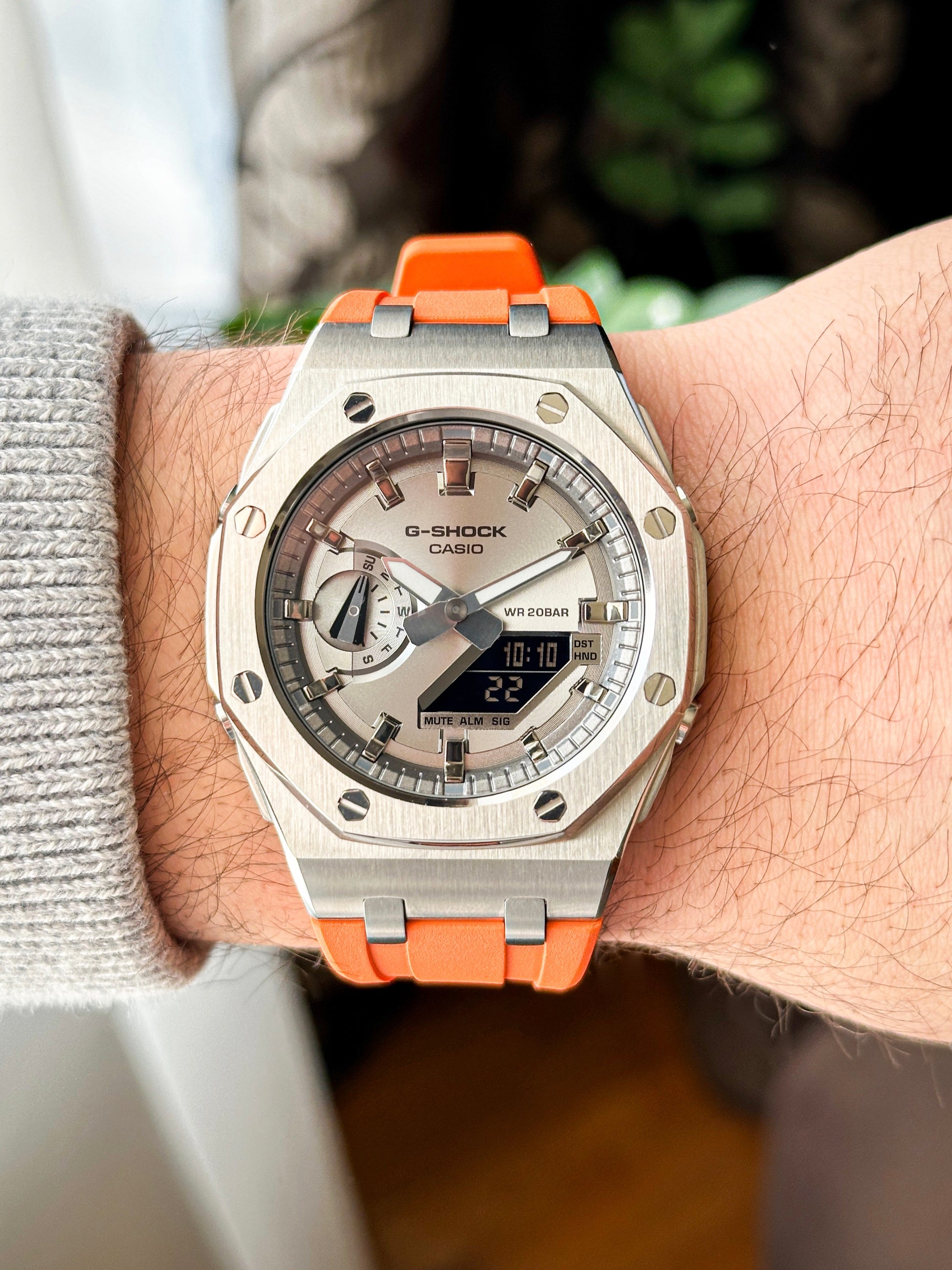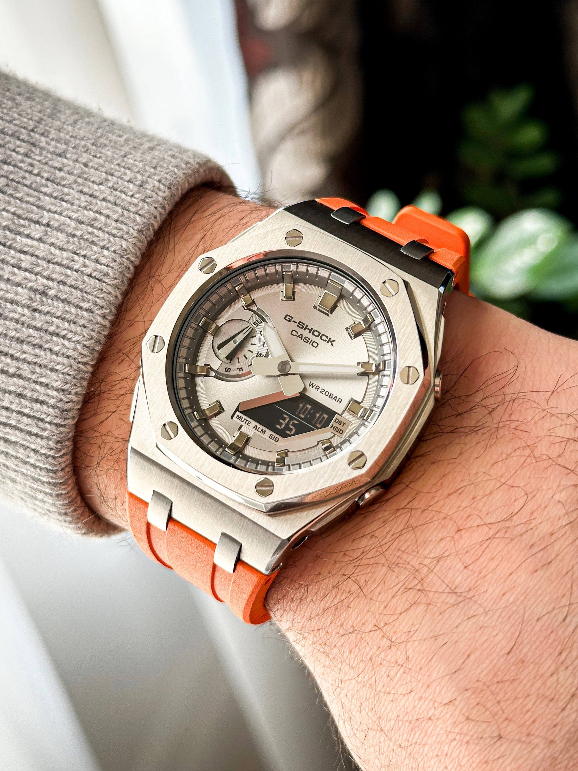 G-SHOCK CasiOak Narandžasto srebrna - sa srebrnim brojčanikom sata