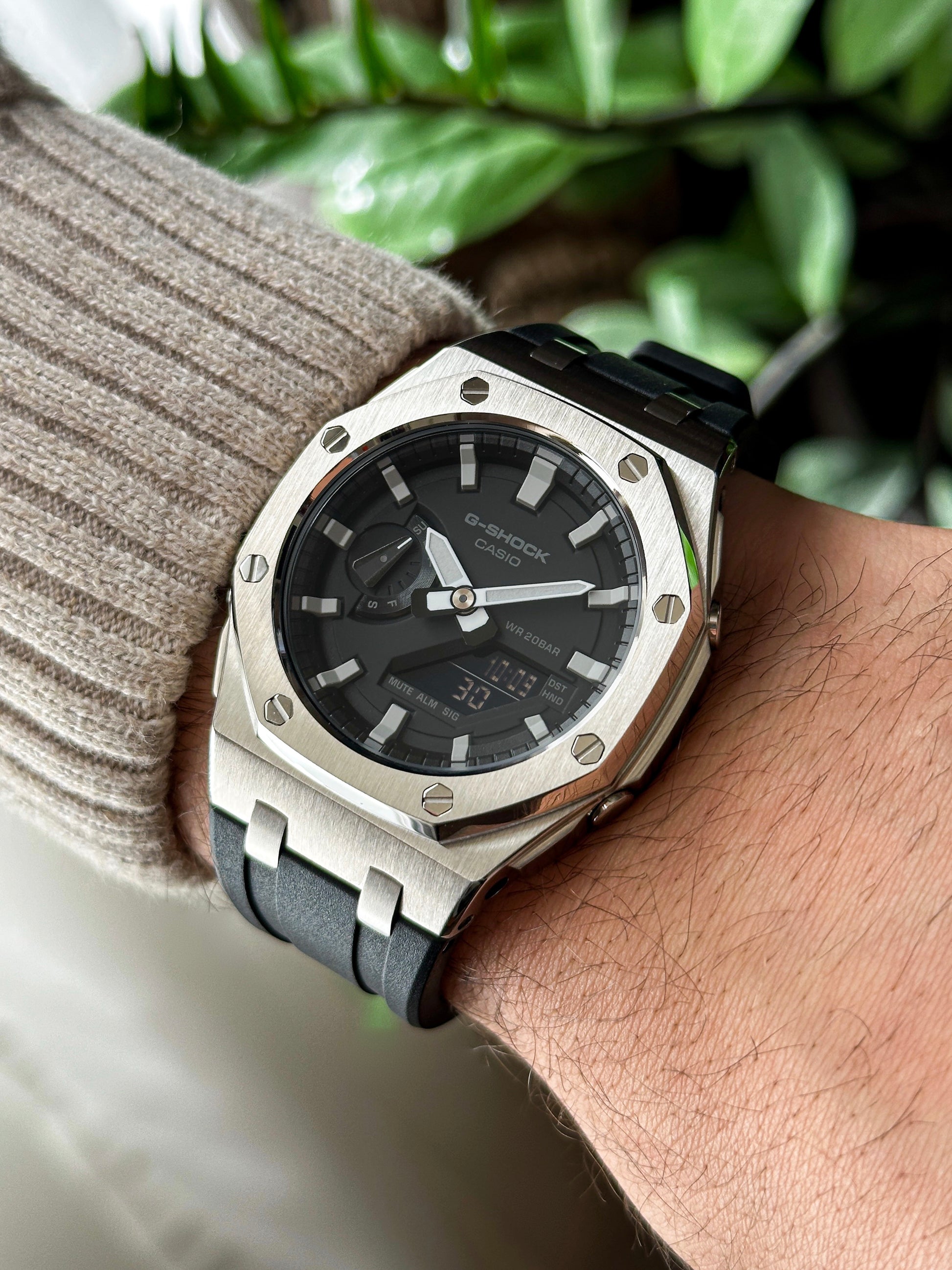 G-SHOCK CasiOak Crno srebrna - sa crno belim brojčanikom sata