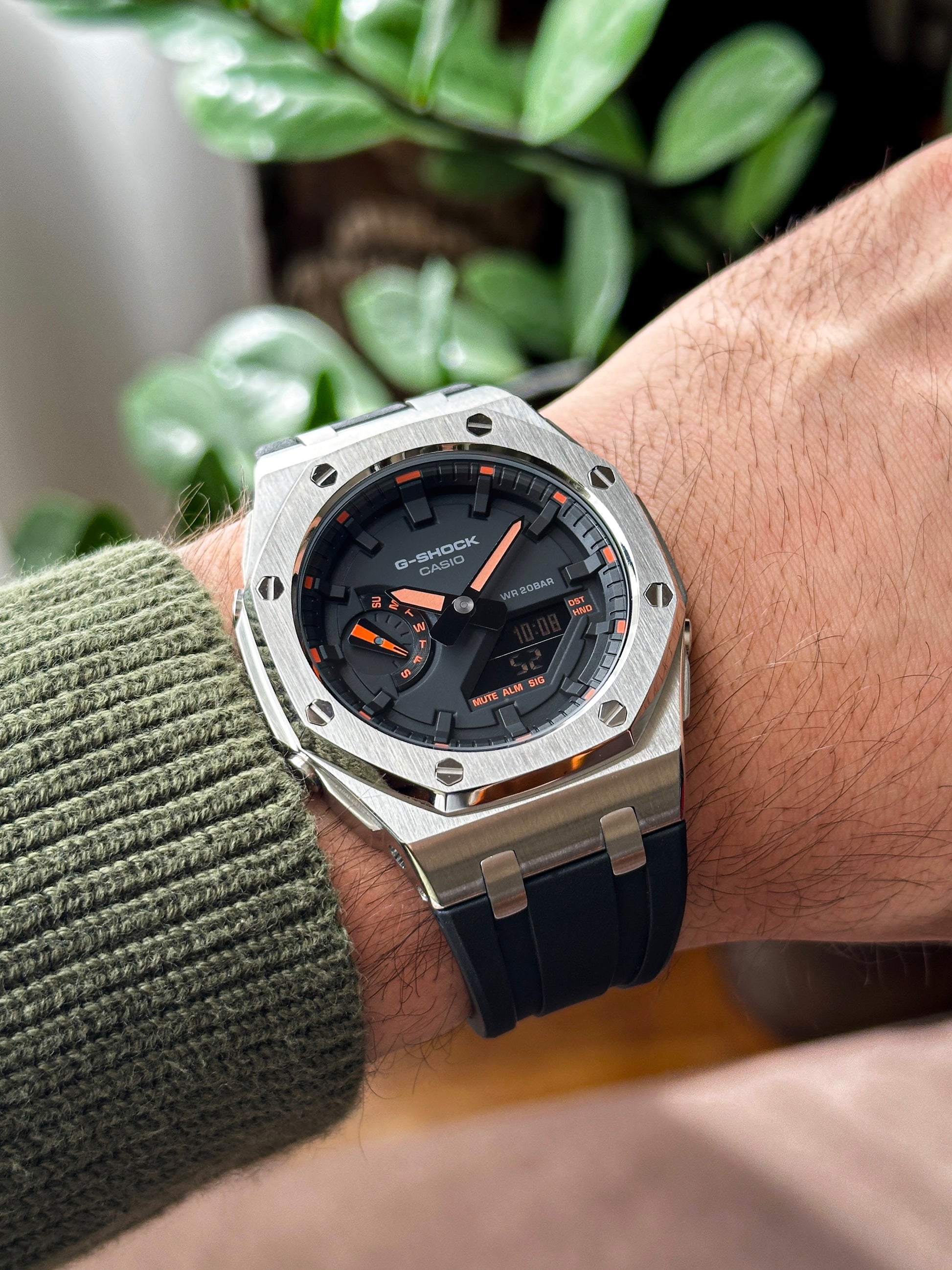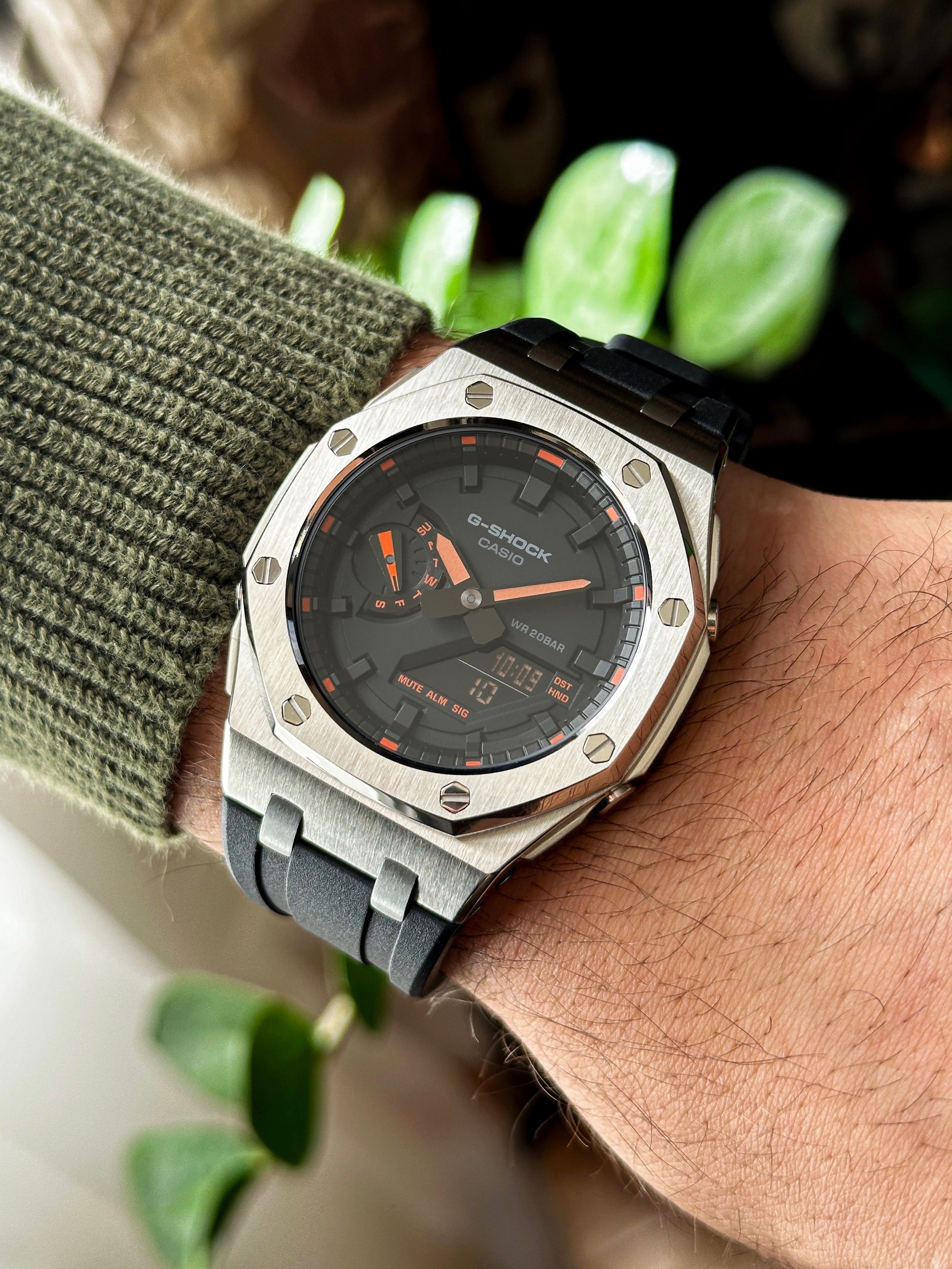 G-SHOCK CasiOak Crno srebrna - sa crno narandžastim brojčanikom sata