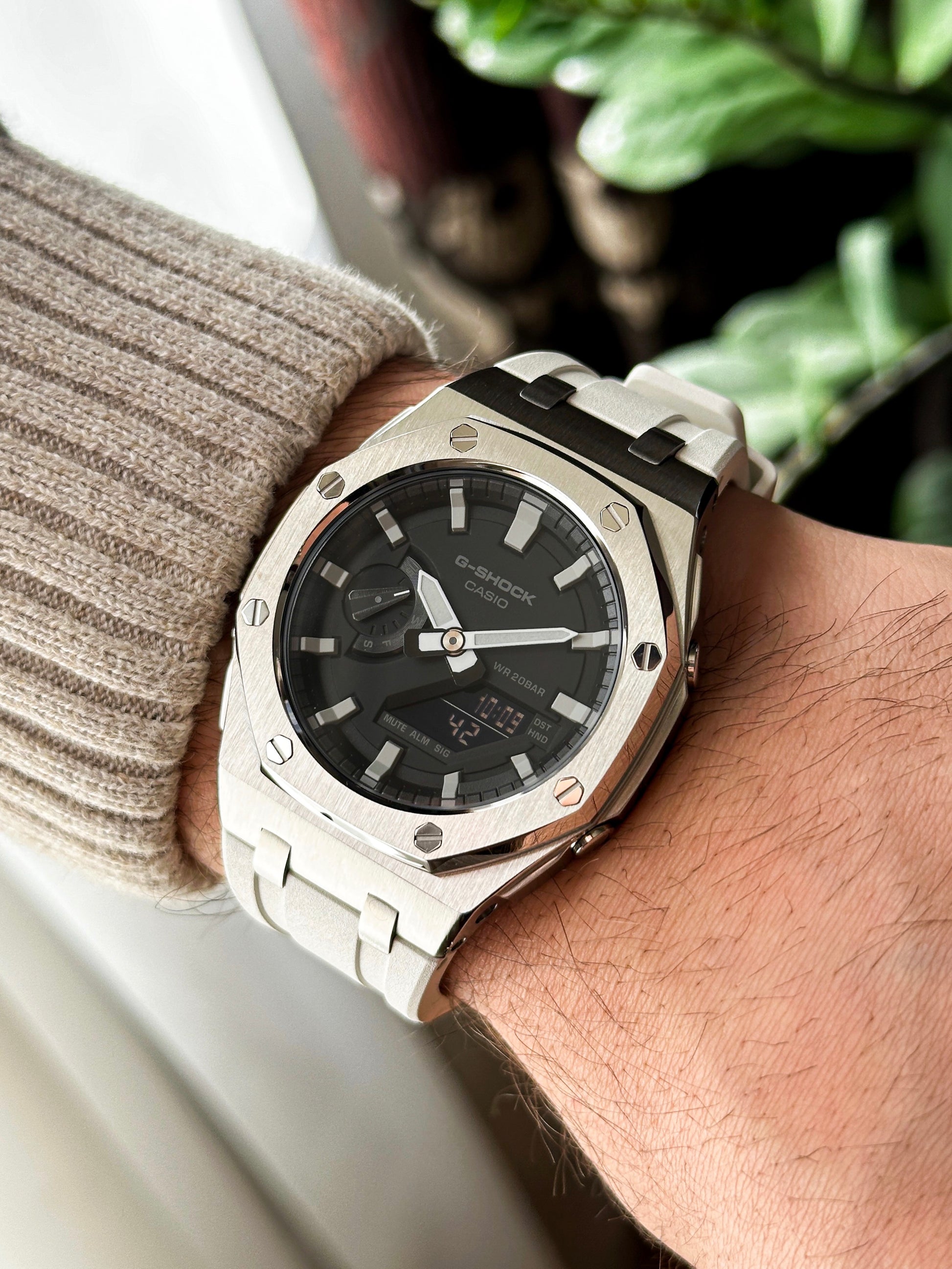 G-SHOCK CasoOak Belo srebrna - sa crno belim brojčanikom sata